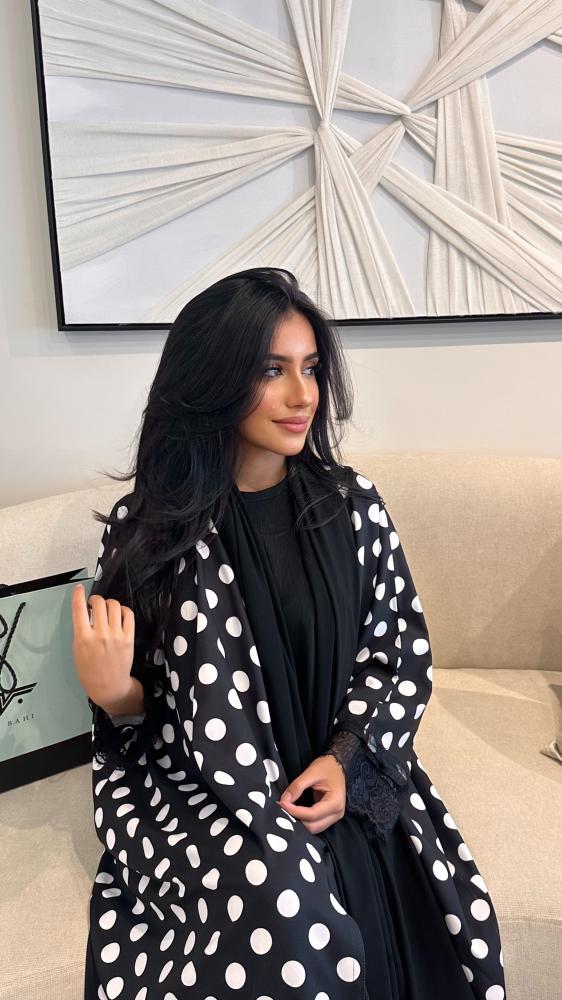 قماش كريب حرير منقّط مع دانتيل ناعم بالأكمام والطرحة 😍